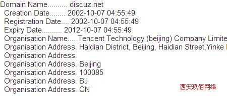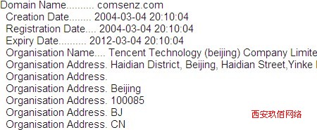 最新的域名注冊信息顯示,康盛創想所屬的comsenz.com以及discuz.net等域名,已經全部過戶到騰訊北京分公司之下。例如,注冊公司地址就更改為騰訊北京分公司的所在地址:海淀區,海淀大街,銀科大廈16層。
