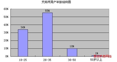 最近,國內最大的職業社交網站天際網對其650萬用戶數據進行了結構分析。結果顯示,占比最大的是26到35歲年齡段的用戶,為55%;其次則是18-25歲的用戶,占比34%;35歲以上的用戶所占比重為11%。