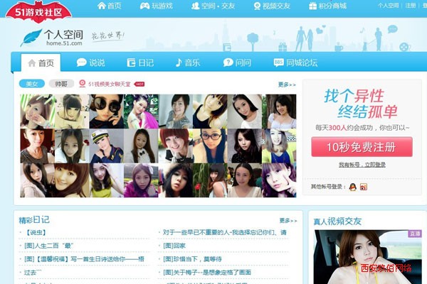 51.com成立于2005年8月,是國內最大的博客社區。主要為用戶提供穩定安全的數據存儲空間和便捷的交流平臺,用戶個性化空間是其最大特色,月活躍用戶數約4000萬。目標群體為宅男宅女。