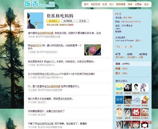 飯否網建立于2007年5月,是國內最早版的Twitter,用戶可以在一個 140 字內的迷你小博客上分享心情、最新動態及圖片,同時用戶間可通過互相關注、私信、或@對話等方式互動。但因為傳播敏感性話題在2009年6月的中國互聯網維護日,網站暫停服務。