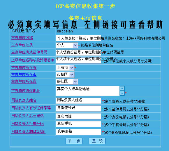 9。填寫備案主體信息(請填寫真實信息,地址要準確到門牌號,否則無法通過審核)10.填寫備案網站的相關信息。填寫完成后,點下一步,再確定提交就ok。。。。。接下來等待審核通過。每天去你郵件里看下,一般7個工作日即可以收到通知,否則再回來繼續提交申請!