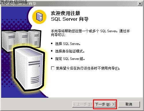 3、彈出SQL server 注冊向?qū)Вc(diǎn)下一步,如下圖: