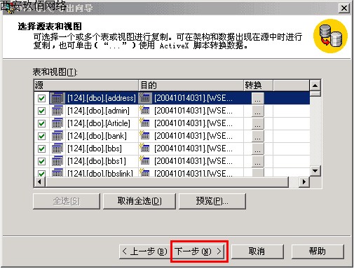 17、選擇您想要導(dǎo)入的表、視圖等數(shù)據(jù)內(nèi)容,如下圖所示: