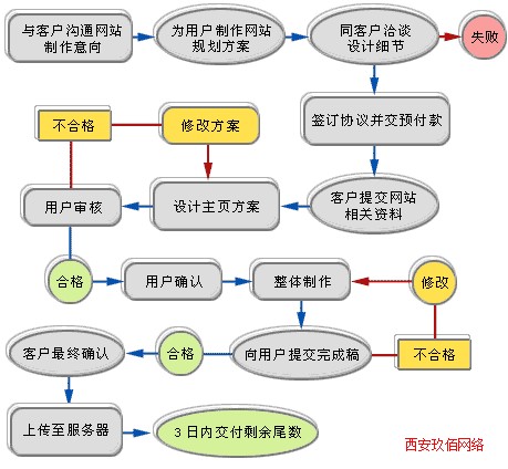 第三步:查詢申辦域名 根據企業的需要,決定是國際域名還是國內域名。域名就是企業在網絡上的招牌,是一個名字,并不影響網站的功能和技術。如果是登記國際域名的話,就必須向國際互聯網絡管理中心申請;國內域名則向中國互聯網服務中心登記。 第四步:網站系統規劃 網站是發布公司產品與服務信息的平臺,所以網站內容非常重要。一個好的網站,不僅僅是一本網絡版的企業全貌和產品目錄,它還必須給網站瀏覽者,即企業的潛在客戶提供方便的瀏覽導航,合理的動態結構設計,適合企業商務發展的功能構件,如信息發布系統、產品展示系統等,豐富實用的資訊和互動空間。我們將根據客戶的簡單材料,精心進行規劃,提交出一份網站建設方案書。 第五步:確定合作 雙方以面談、電話或電子郵件等方式,針對項目內容和具體需求進行協商。雙方認可后,簽署《網站建設合同書》并支付50%網站建設預付款。 第六步:網站內容整理 根據網站建設方案書,由客戶組織出一份與企業網站欄目相關的內容材料(電子文檔文字和圖片等),我們將對相關文字和圖片進行詳細的處理、設計、排版、掃描、制作,這一過程需要客戶給予積極的配合。 第七步:網頁設計、制作、修改 一旦網站的內容與結構確定了,下一步的工作就是進行網頁的設計和程序的開發。網頁設計關乎企業的形象,一個好的網頁設計,能夠在信息發布的同時對公司的意念以及宗旨作出準確的詮釋。很多國際大型公司都不惜花費巨大的投入在網頁的設計上。我們擁有專業的技術人員,將給您提供最專業的網頁設計,使您的網站表現不凡,脫穎而出。 第八步:網站提交客戶審核并發布 網站設計、制作、修改、程序開發完成后,提交給客戶審核,客戶確認后,支付網站建設余款。同時,網站程序及相關文件上傳到網站運行的服務器,至此網上正式開通并對外發布。 第九步:網站網站推廣及后期維護 在網絡上建立了一個家,是企業上網的一個重要標志,但還不等于說就可以大功告成了。因為一個設計新穎,功能齊全的網站,如果沒有人來看就起不到應有的作用了。為了能讓更多的人來瀏覽企業的網站,必須有一個詳盡而專業的網站推廣方案,包括著名網絡搜索引擎登錄,網絡廣告發布,郵件群發推廣,Logo互換鏈接等等。這一部分尤其重要,專業的網絡營銷推廣策劃必不可少。西安玖佰網絡可給您提供國內外搜索引擎登陸服務、門戶網站分類廣告、分布式批量電子郵件廣告、電子雜志貼片等多種推廣方案。另外,我們還將根據您具體的需要,按您的要求和授權,對您的網站頁面和內容進行適當的修改、更新、維護服務。
