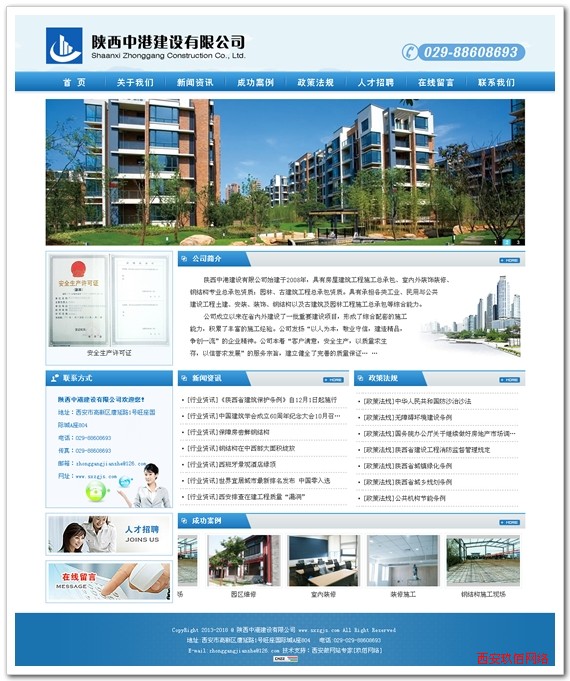陜西中港建設有限公司 http://www.sxzgjs.com 始建于2008年,具有房屋建筑工程施工總承包、室內外裝飾裝修、鋼結構專業總承包資質;園林、古建筑工程總承包資質。企業注冊資金3000萬元。在冊職工285人,具有各類注冊執業資格人員165人,其中一級、二級建造師18人,高級職稱3人,中級職稱28人。具有承擔各類工業、民用與公共建設工程土建、安裝、裝飾、鋼結構以及古建筑及園林工程施工總承包等綜合能力。