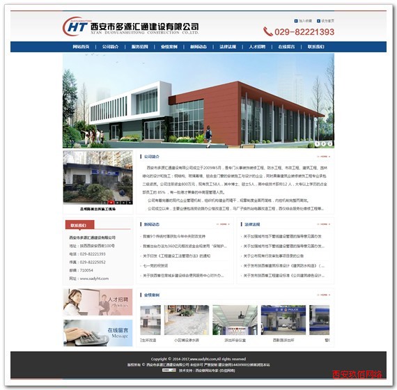 西安市多源匯通建設有限公司 http://www.xadyht.com/ 成立于2009年5月,是專門從事裝飾裝修工程、防水工程、市政工程、建筑工程、園林綠化的設計和施工;鋼結構、玻璃幕墻、鋁合金門窗的安裝施工與設計的企業,同時具備建筑業裝修裝飾工程專業承包二級資質。